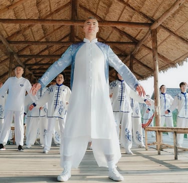 There are nine levels/postures in Rong Quan Dao body excercise method. Currently, Rong Quan Dao practitioners are practicing the first posture, "Move Heaven & Shake Earth". The other eight postures of Rong Quan Dao are: Stand between Heaven & Earth, Reshape Heaven & Earth, Connect Heaven & Earth, Freely Come and Go, Rotate Yin & Yang, Laughing Lion Roaring Sky, Shake Eight Directions and All Methods Return to Oneness. The nine postures of Rong Quan Dao are presented one by one according to the practice sequence of Rong Quan Dao, and are formed in accordance with the energy flow. The various Rong Quan Dao (movement) secret methods derived from each posture are extremely powerful. They can activate the human body's immune system without the help of any external objects or forces, and quickly adjust our body and mind. The body movements contain profound life wisdom. The first posture of Rong Quan Dao, in the state of "five knacks and five hearts", moves the heaven & earth with "feeling", "the macro and the micro meet each other", and achieves the life state of "harmony between human and nature", showing the profound life wisdom contained in the Rong Quan Dao body method. This is the unique value of Rong Quan Dao (body method) as a "tool" of life wisdom. We know that according to the theory of Yin Yang, Five Elements and Eight Diagrams, the ancients corresponded the limbs of the human body to various hexagrams. From the perspective of the human body itself, these hexagrams are "innate". People (bodies) follow the operation rules of Yin Yang, Five Elements and Eight Diagrams from childhood to old age, from birth to death, there is no objection. The Rong Quan Dao body method and its finishing movements guide people (life) to operate in a new way:
